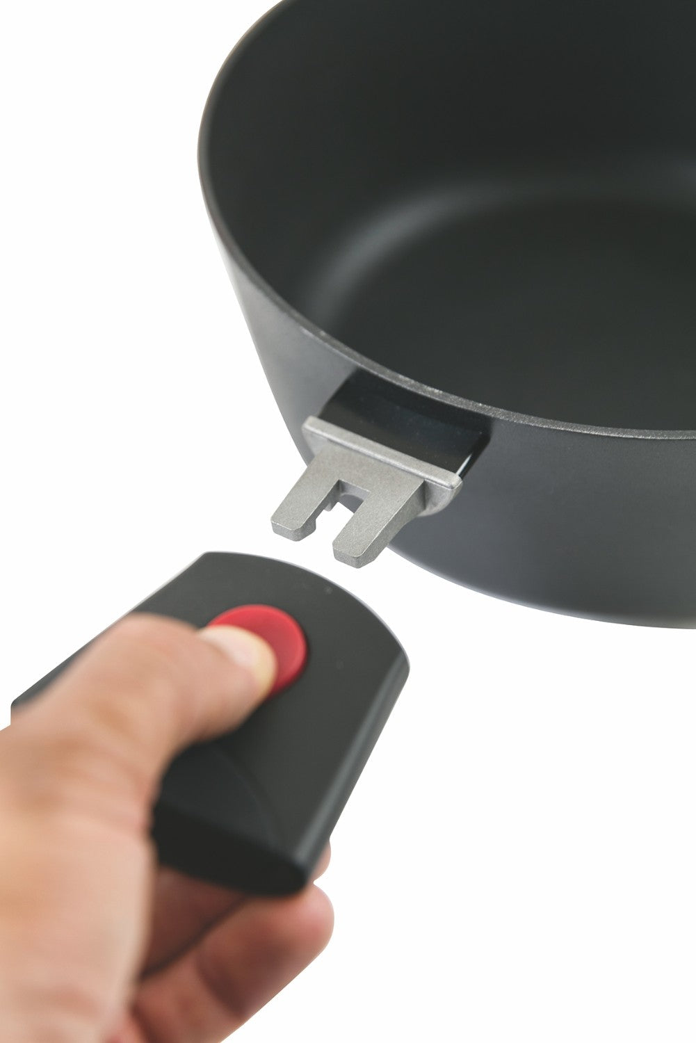 Puoi passare dal piano cottura al forno con estrema facilità e poi rimuovere il manico grazie al bottoncino posizionato sull'impugnatura.