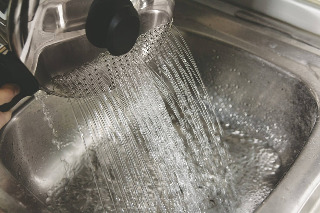 Basta inclinare la casseruola nel lavabo e l'acqua sarà espulsa dai fori.