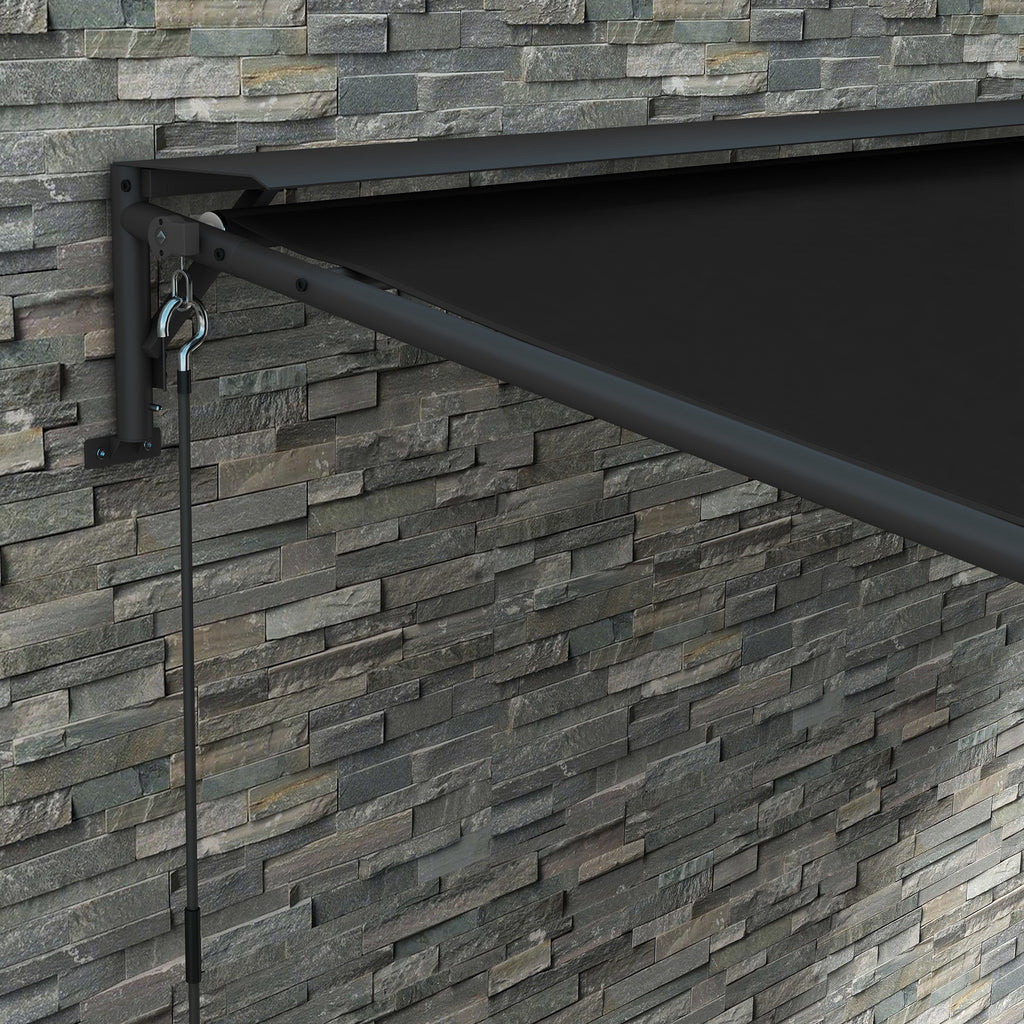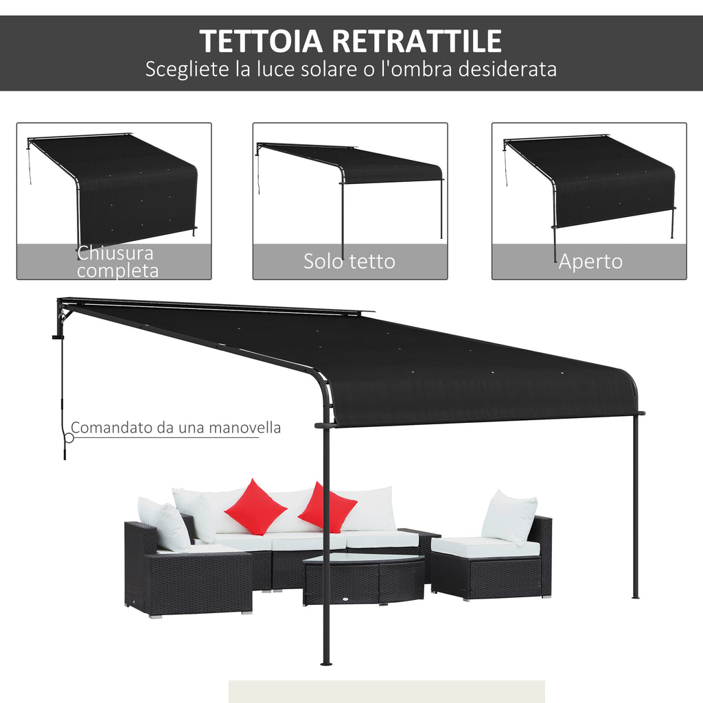 Pergola Addossata 3x4 m con Tettoia Retrattile e Manovella in Acciaio e Poliestere Grigio Scuro