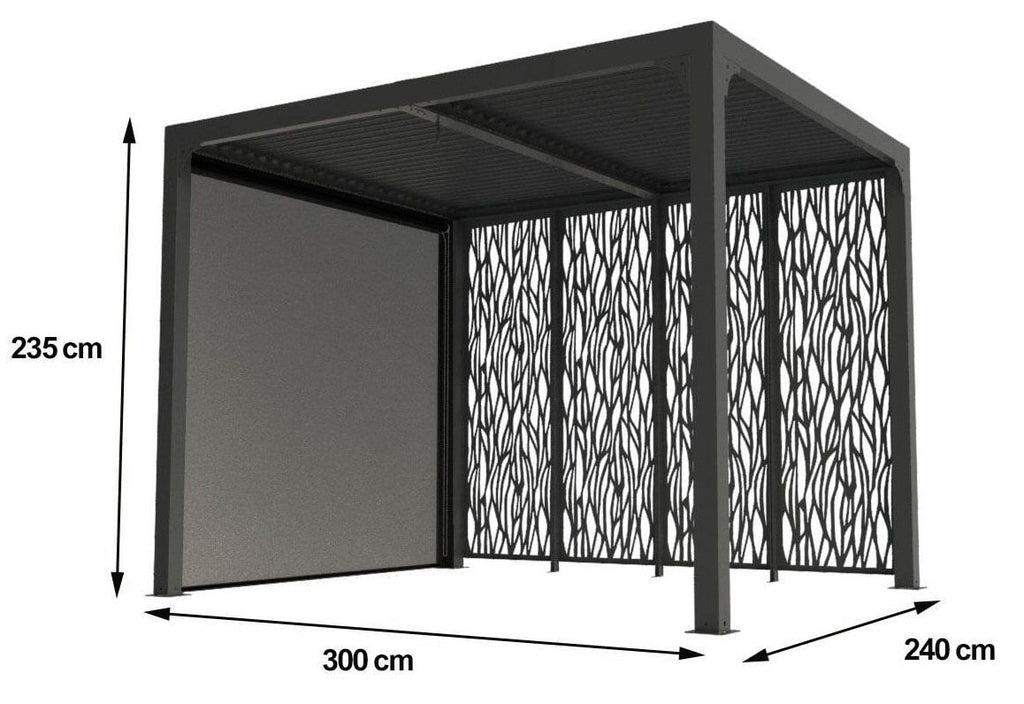 Pergola da Giardino 2,4x3x2,35 m in Alluminio con 4 Pannelli Moucharabieh e Tenda Laterale Grigio Antracite