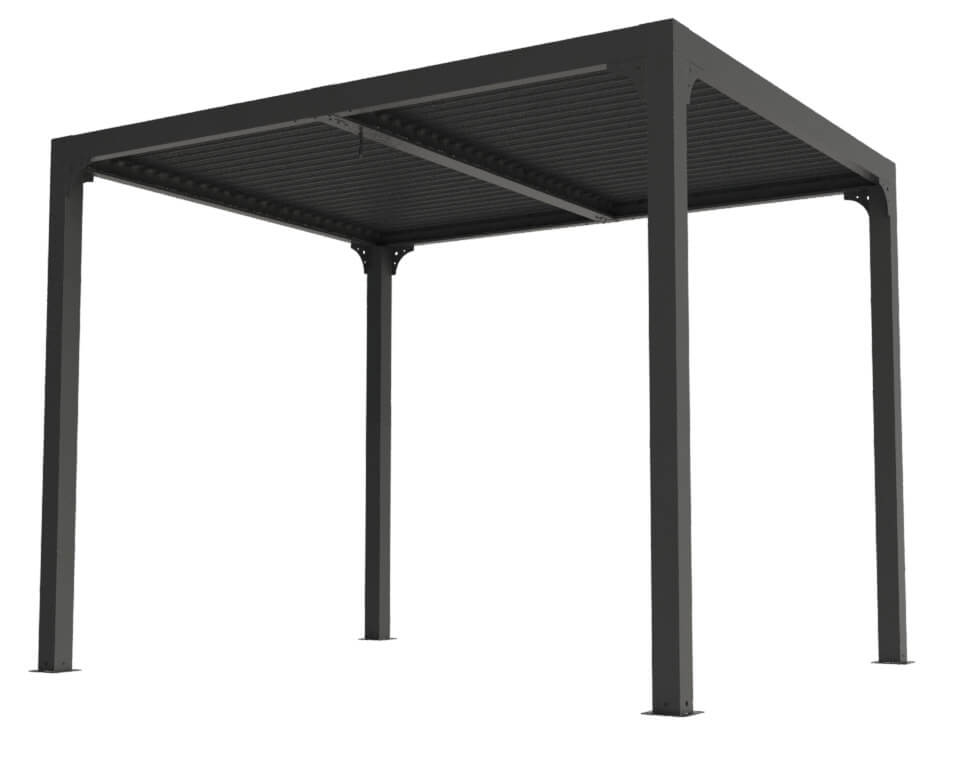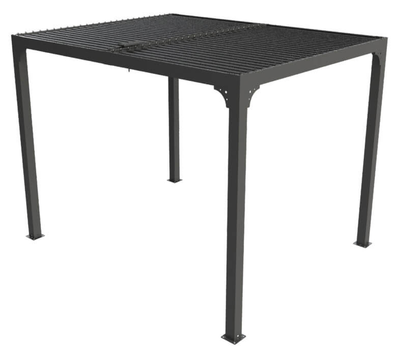- Copertura: pannelli in alluminio 90 mm, spessore 1mm, colore grigio antracite, orientabili fino a 90°
