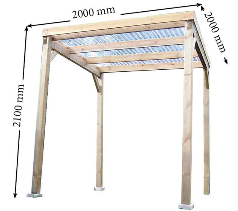 - Dimensioni esterne, a terra: 2,0 x 2,0 m