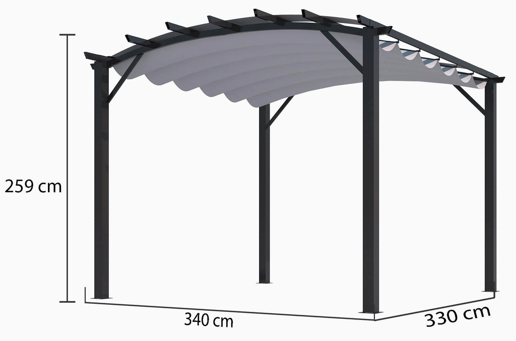 Pergola da Giardino 3,4x3,3x2,4 m in Alluminio con Telo di Copertura 280g/mq Grigio