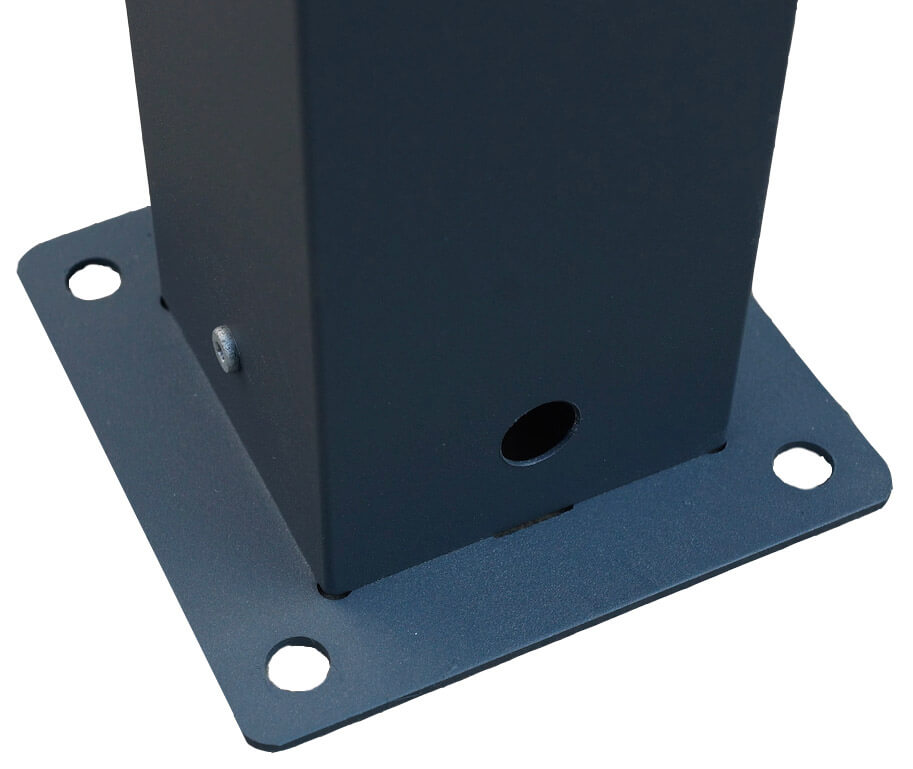 - Fornito di: 4 pali dimensione 10 x 10 cm, spess 1,2 mm, completi di placche di fissaggio a terra 16 x 16 cm spessore 3 mm ; 2 grondaie laterali