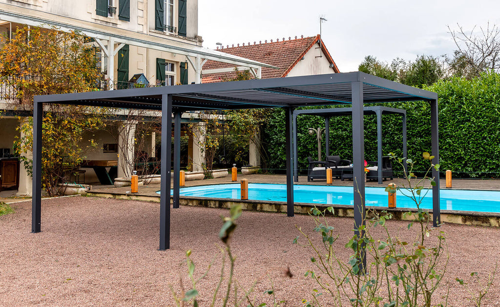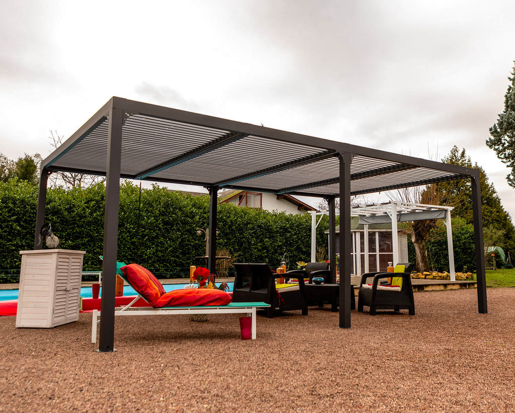 Con la sua struttura in alluminio al 100%, hai un materiale resistente e leggero che non arrugginisce, perfetto in tutte le stagioni. Tutti i pezzi di giunzione, progettati in acciaio epossidico, garantiscono la rigidità della struttura, pur affermando la resistenza e la longevità dei meccanismi di fronte alle aggressioni esterne. Sviluppato per offrire una semplice installazione, grazie alle sue istruzioni dettagliate e alle parti numerate, avrai un pergolato bioclimatico che permette di giocare con i capricci del sole, di godere di una riposante atmosfera estiva o di pranzare in tutta tranquillità nonostante una leggera pioggia fine a fine autunno.