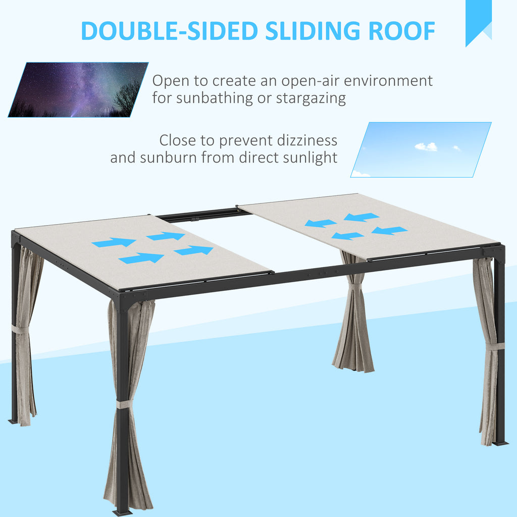 - TETTO SCORREVOLE: La pergola gazebo ha un tetto scorrevole che puoi aprire manualmente in due sezioni per far circolare maggiormente l'aria, oppure chiuderlo per proteggerti dal sole forte