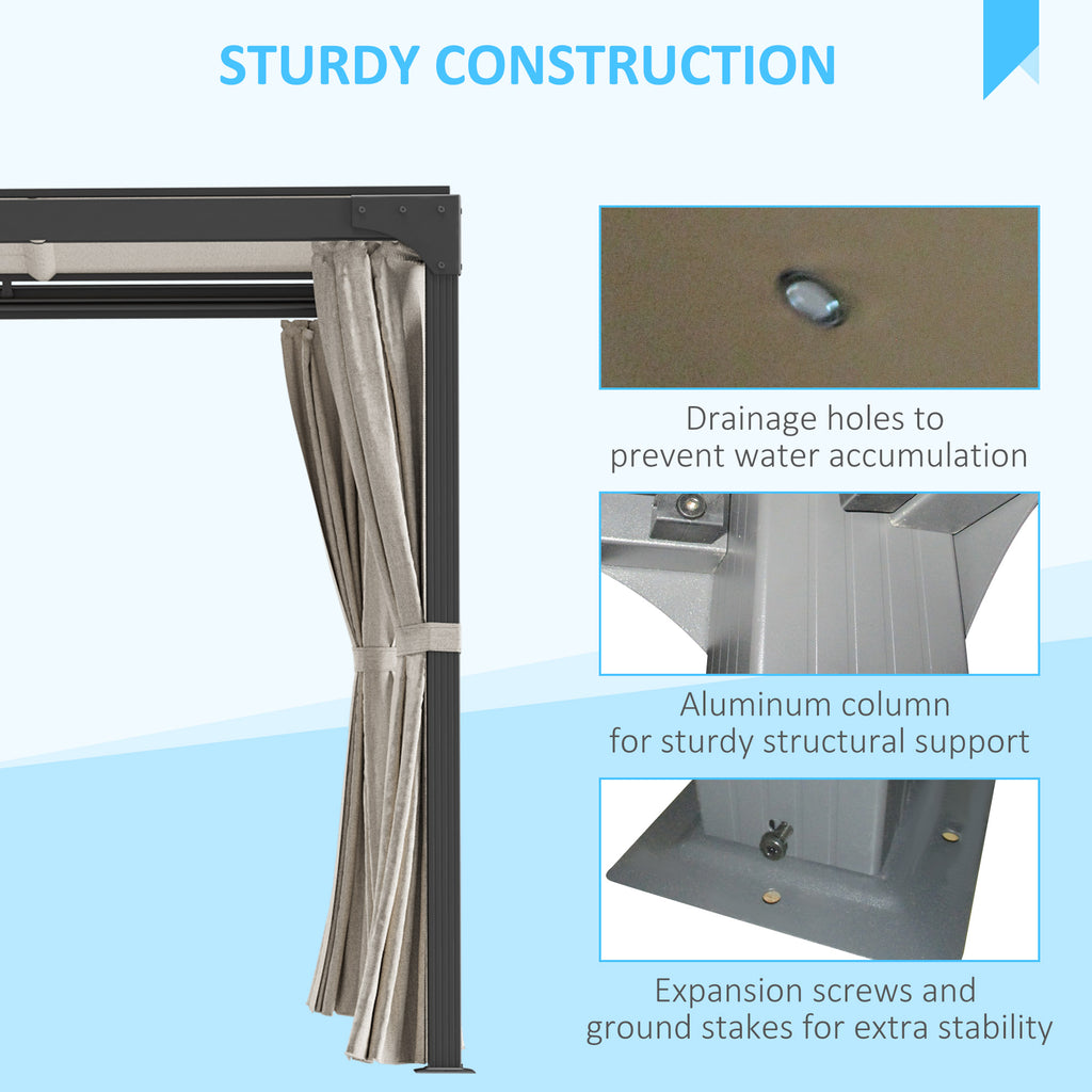 Pergola da Giardino 3x3m con Tende in Alluminio e Acciaio Beige