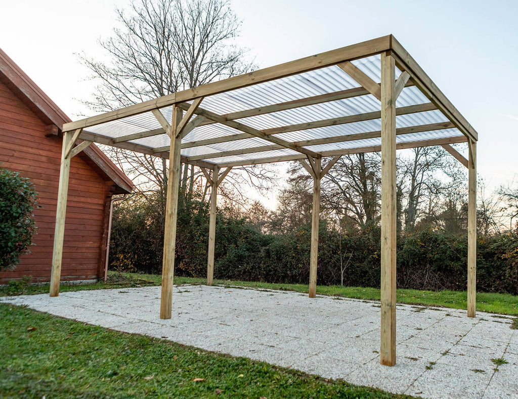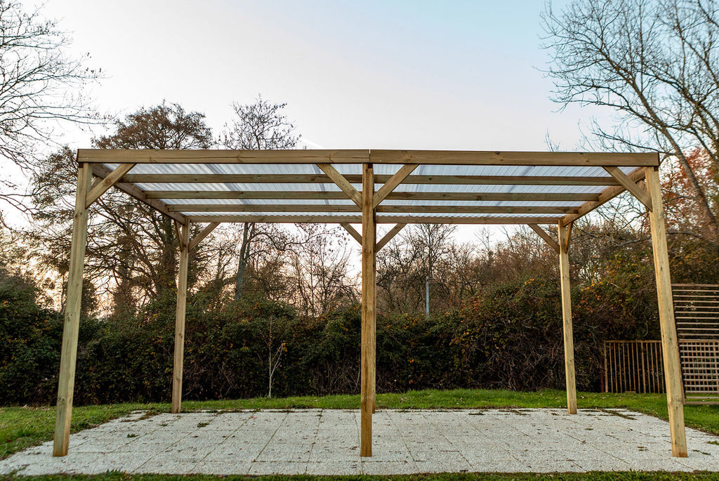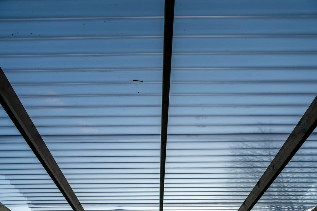 - Copertura: lastre pvc trasparente spessore, da fissare alle capriate.