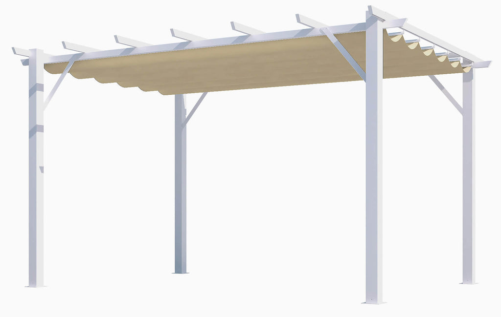 Pergola da Giardino 4x3x2,3 m in Alluminio Bianco con Telo di Copertura 140g/mq Ecrù