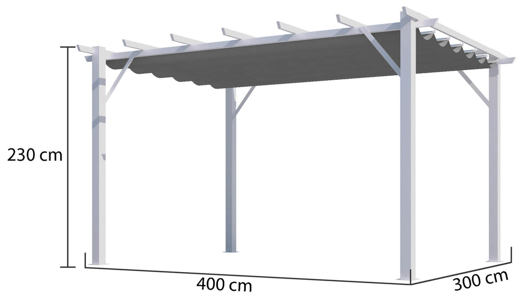 Pergola da Giardino 4x3x2,3 m in Alluminio Bianco con Telo di Copertura 280g/mq Grigio