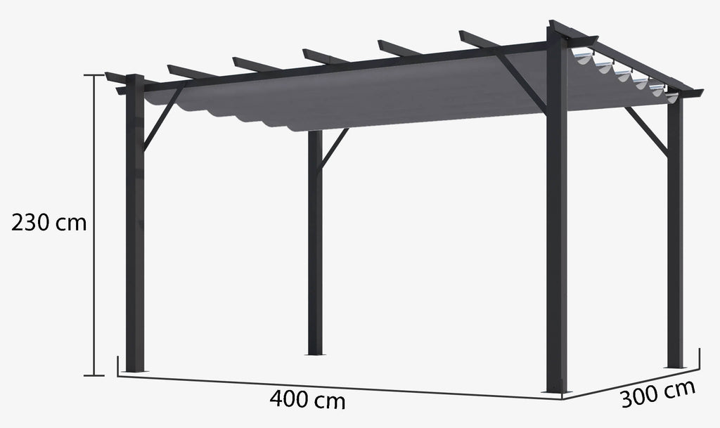 Pergola da Giardino 4x3x2,3 m in Alluminio Grigio Antracite con Telo di Copertura 280g/mq Grigio