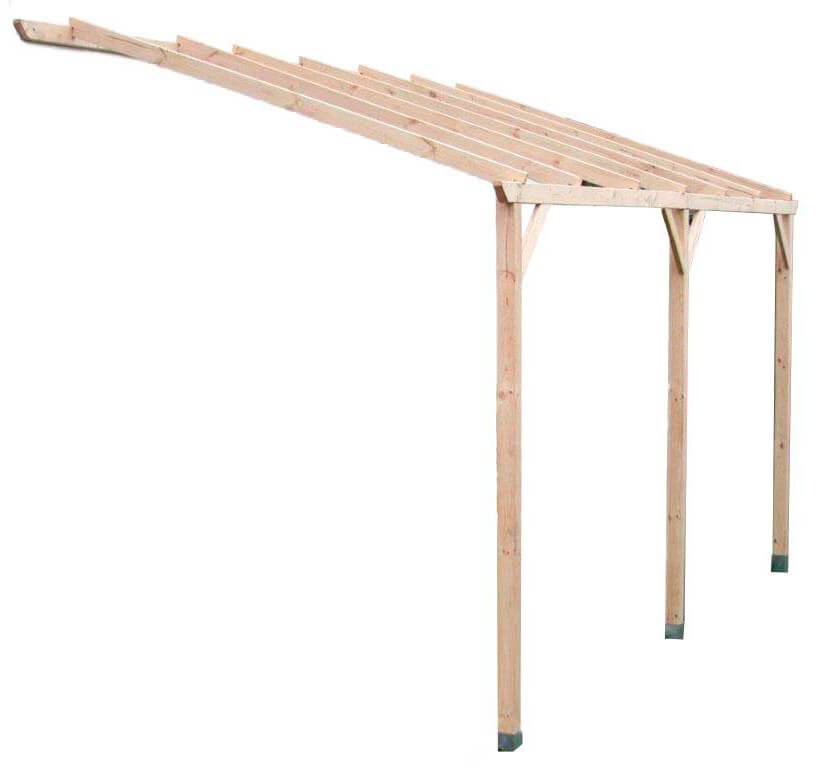 Pergola da Giardino Addossata 3x5x2,20-2,40 m in Legno Senza Copertura