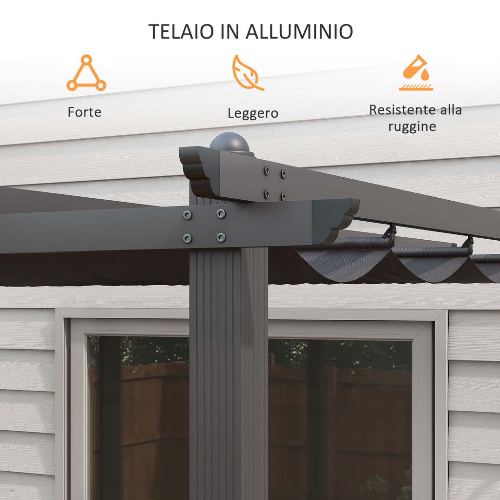 - TETTUCCIO RETRATTILE: Questa pergola per esterno ti assicura un'efficace copertura dal sole per stare all'aperto a ogni ora del giorno grazie al tettuccio rivestito in PU