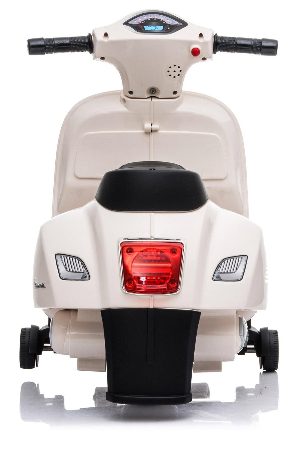 Bellissima Moto Elettrica Mini Vespa Gts Piaggio unica nel suo stile con accelleratore a Pedale, faro anteriore che si illumina con luce a led, suoni del clacson. Ottime rifiniture con sedile in plastica e schienale per dare maggiore confort. Batteria e caricabatterie a 6V inclusi.