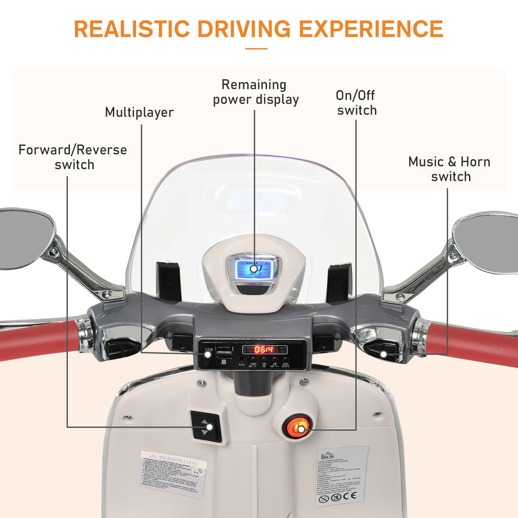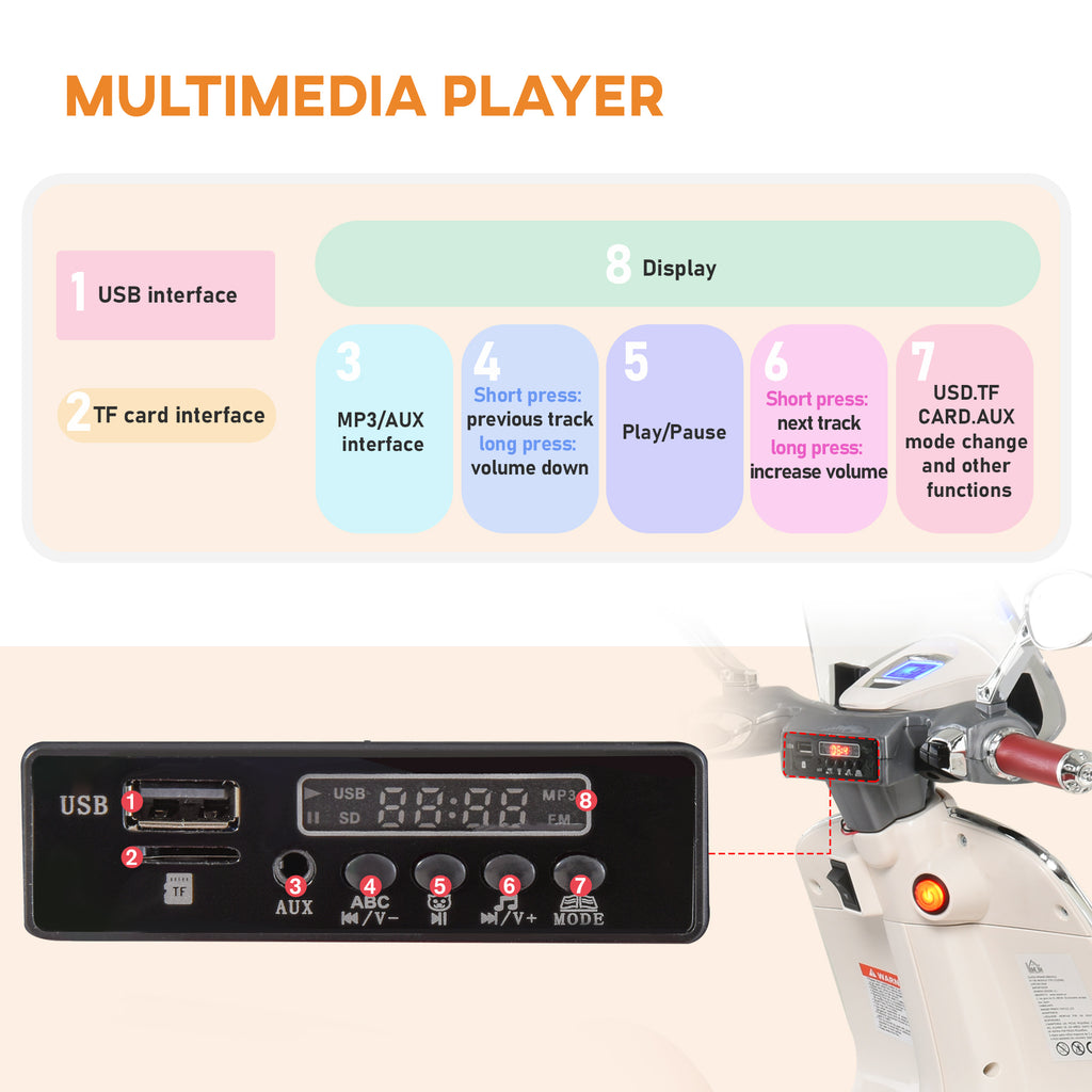 - La presenza di pedali e di comodi manubri sulla vespa giocattolo elettrica aiuta la guida dei bambini di età da 3 a 6 anni