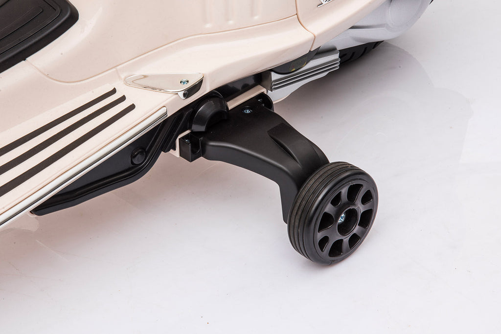 La moto cavalcabile Vespa per bimbi è il gioco perfetto per il divertimento del tuo bimbo durante le calde giornate all'aperto. Il prodotto è realizzato con materiali robusti che renderanno il gioco del tuo bimbo sicuro e duraturo nel tempo. E' dotata di cruscotto con pannello multimediale per porta mp3 e usb, luci e suoni, tasti per la musica, motore da 30W con batteria 6V-4.5ah ricaricabile in 9-10 ore, e una velocità massima di 2-3 km/h.