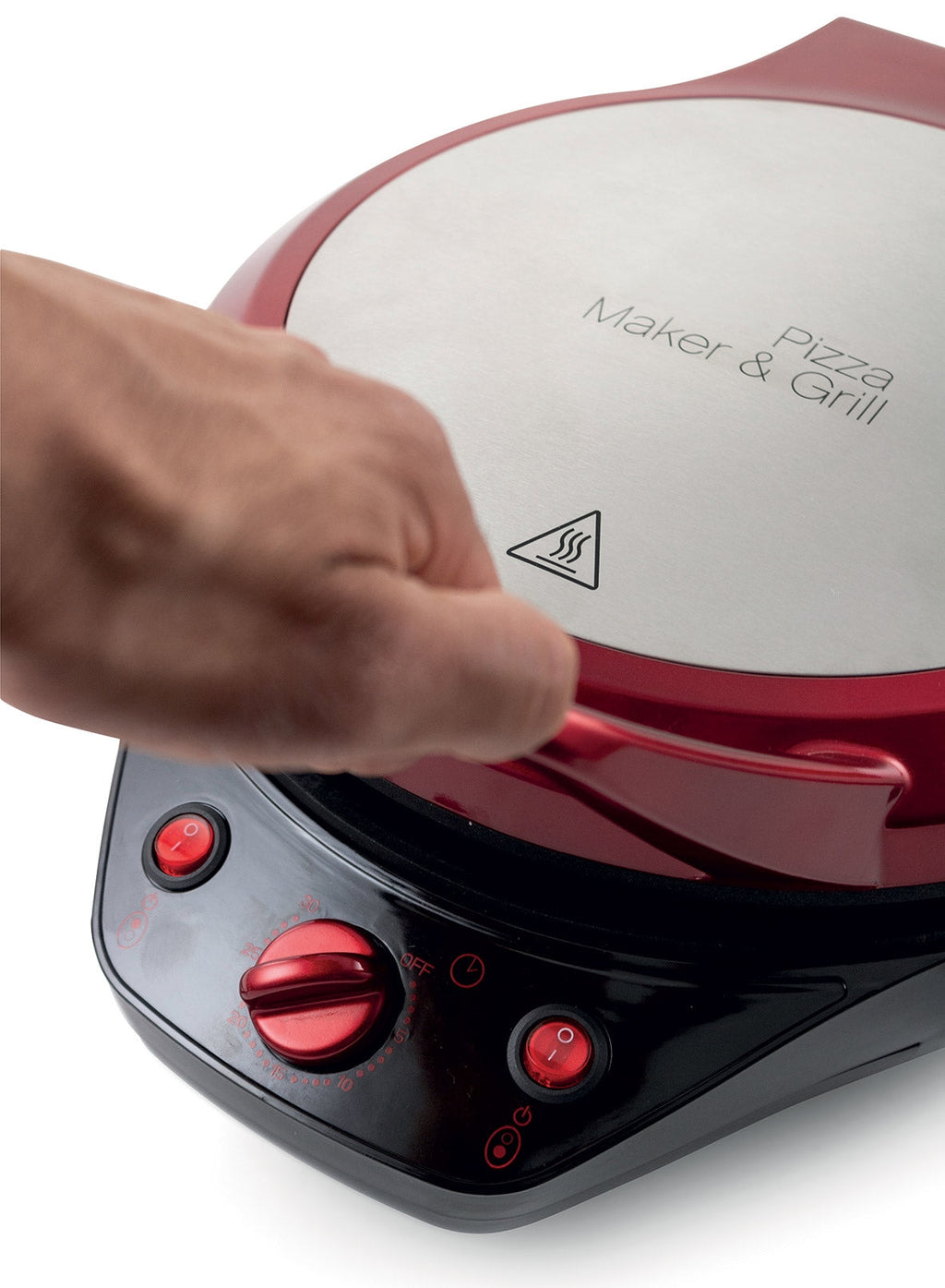 Italì Pizza Maker è dotato di 3 impostazioni di cottura selezionabili e di un timer che suona a fine cottura questo piano cottura è veramente facile da usare, fuori e dentro casa. Il bordo alto della padella aiuta a conservare il succo del cibo, mentre la superficie del grill ha i bordi bassi, così è più facile girare le pietanze. La superficie antiaderente inoltre permette di cucinare con meno grassi, così i piatti saranno deliziosi e più sani. Una volta finito di usarlo, si pulisce semplicemente con un panno, e grazie al suo design compatto può essere portato ovunque.