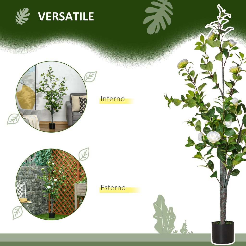 Pianta Artificiale Albero Camelia H150 cm con Vaso Verde e Bianco