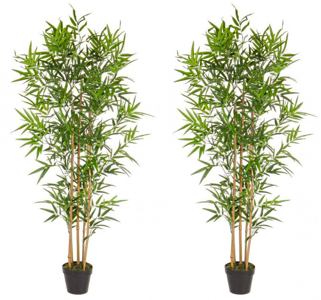 Set 2 Piante Artificiali di Bamboo 70x70x155 cm in Plastica con Vasi Verde
