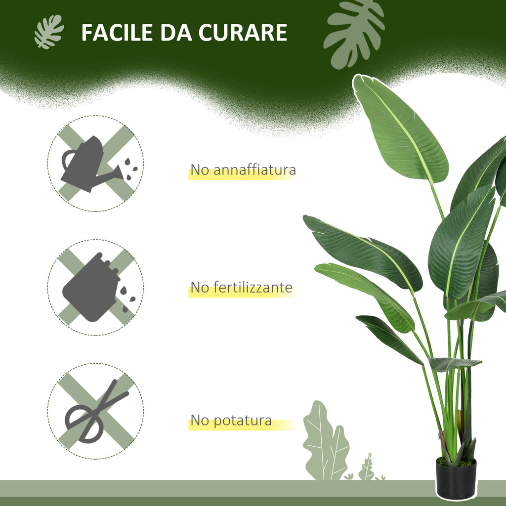 Set 2 Piante Artificiali Palma del Viaggiatore da Interno e Esterno H150 cm con Vaso Verde