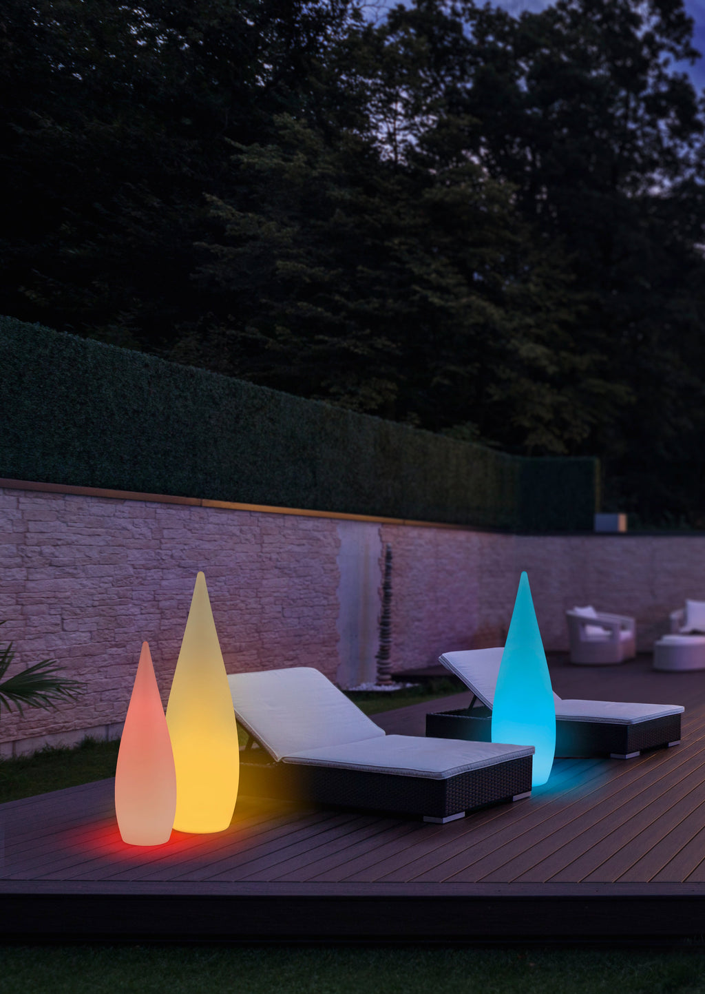 Palmas Lampada Da Appoggio Da Esterno Goccia Rgb E Bianco Ricaricabile Con Telecomando Multifunzione D. 37Cm X H. 120Cm Ip54