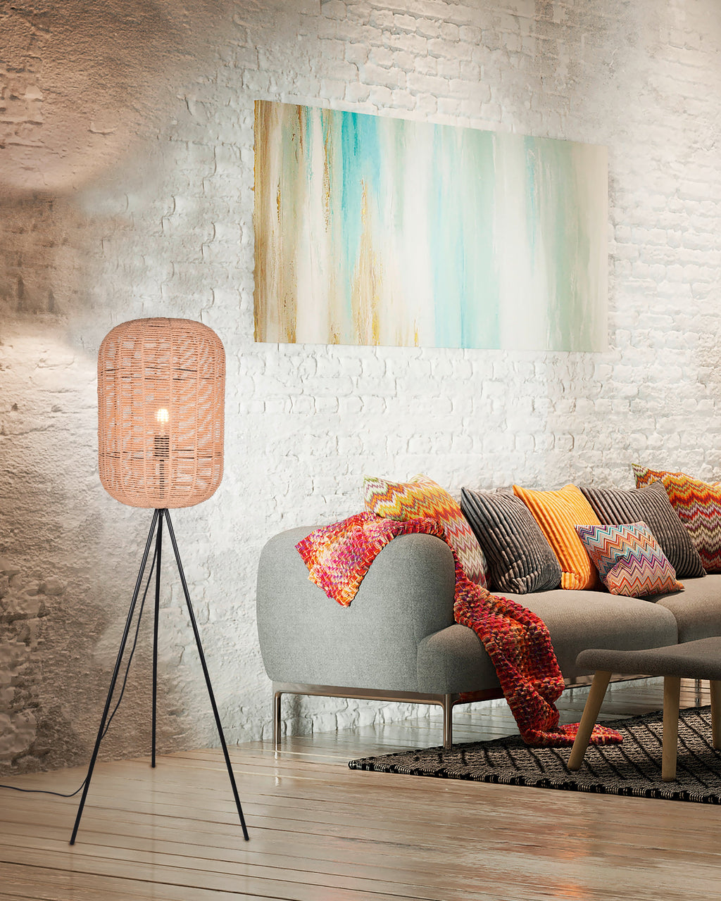 Runa Piantana Diffusore Grande Metallo Nero E Corda D.35Cm H. 150Cm