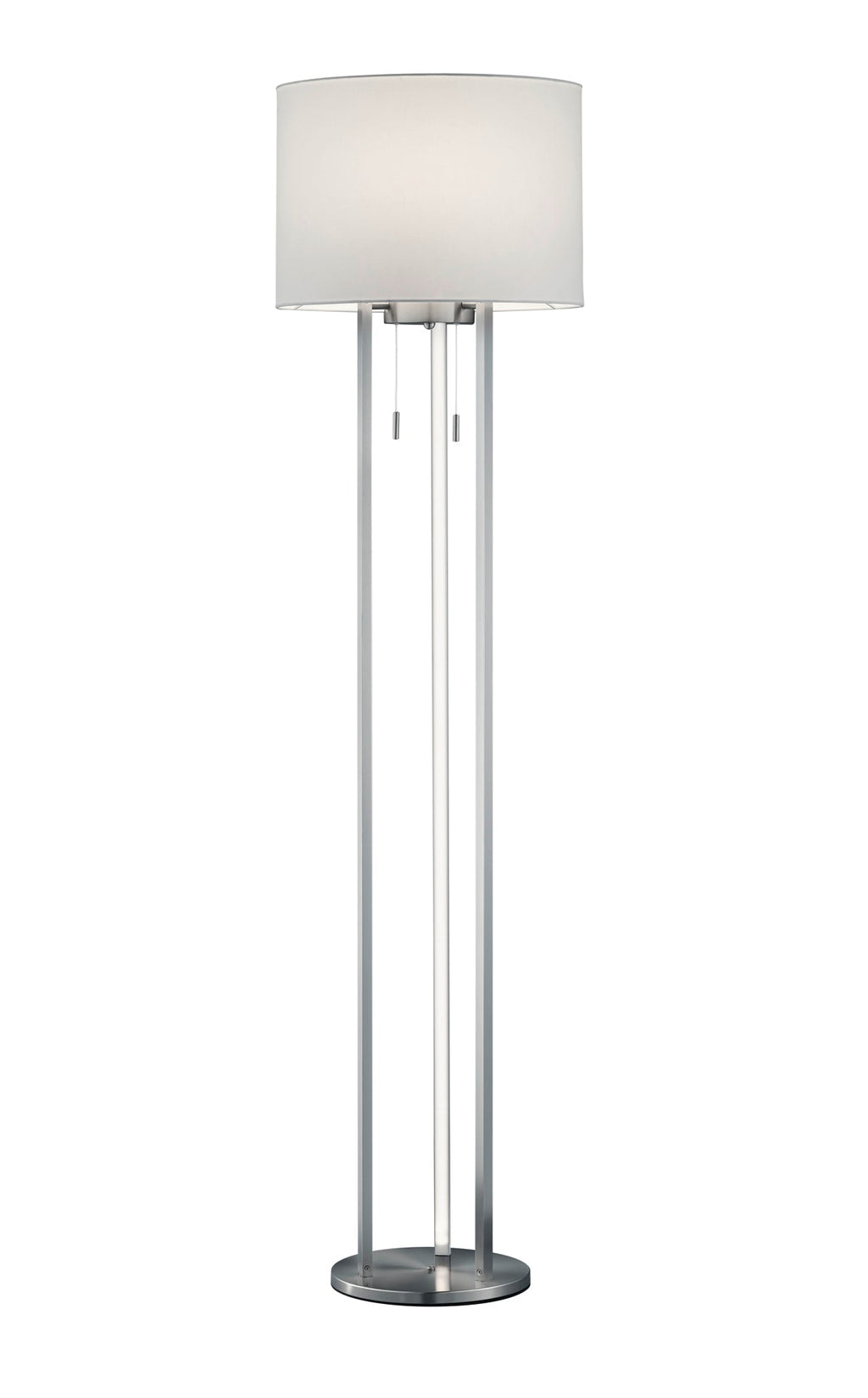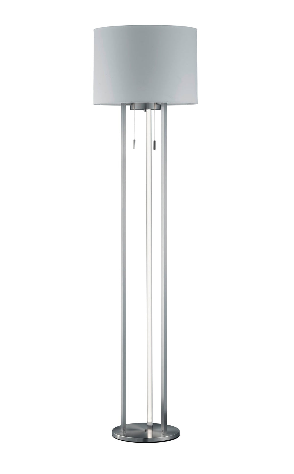 Tandori Piantana Con Fusto Led Metallo Acciaio Satinato Con Diffusore Tessuto Bianco Con Accensione Separata H. 156Cm