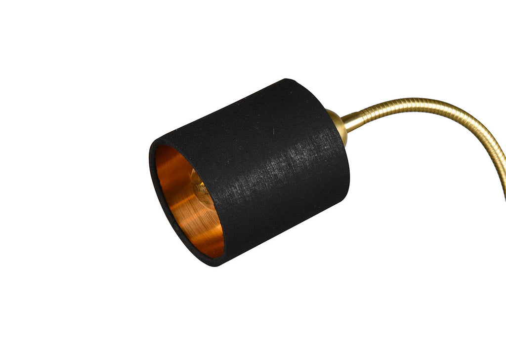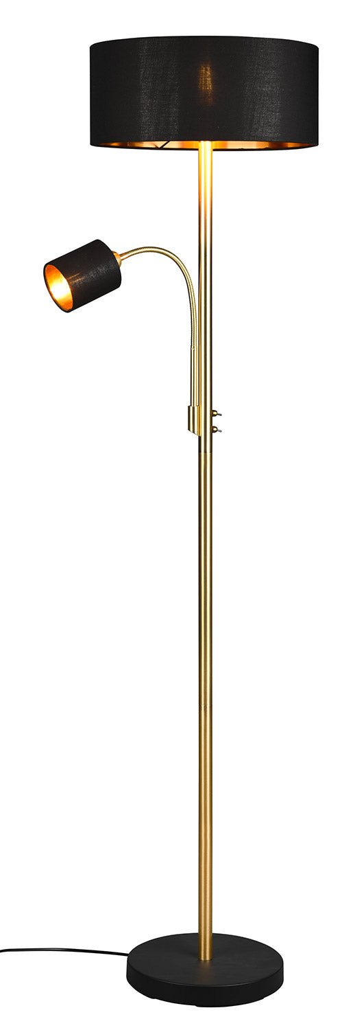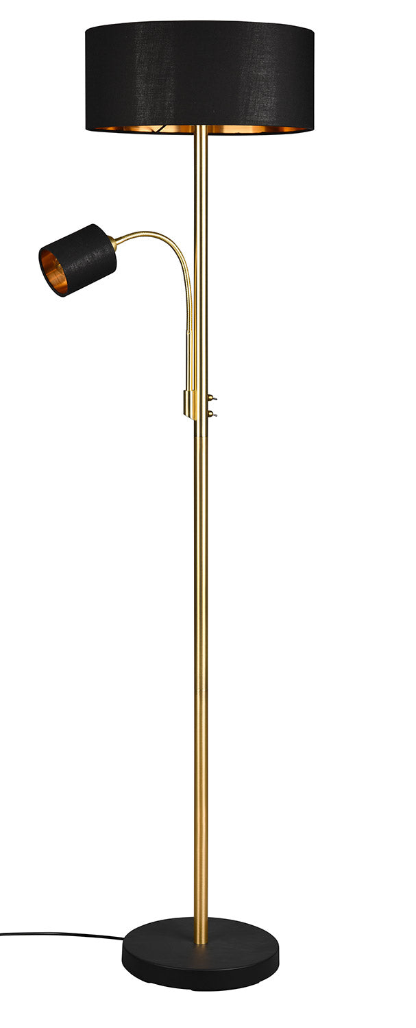 Motel Piantana Metallo Ottone con Lampada Da Lettura con Paralumi Neri e Oro Interruttori Separati H. 170Cm
