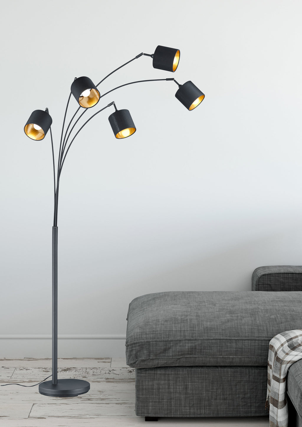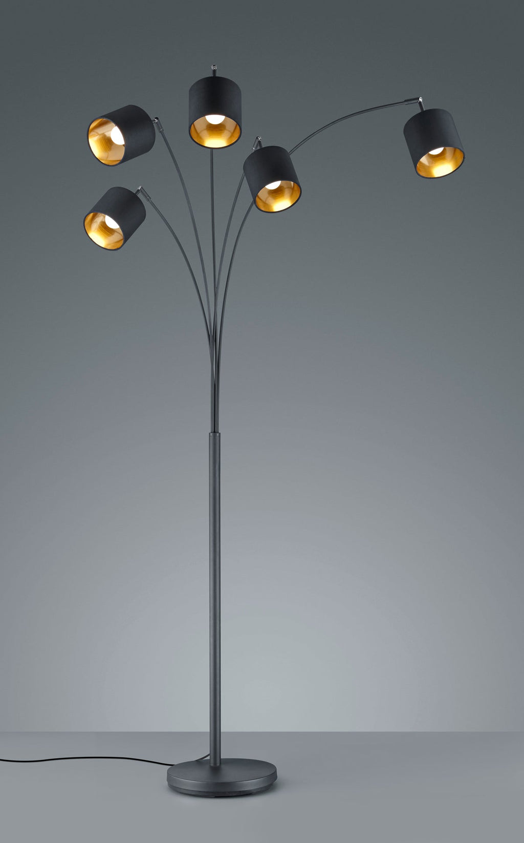 Tommy Piantana Ad Arco Con 5 Diffusori Paralumi Neri E Oro Base Metallo Nero Opaco H.200Cm