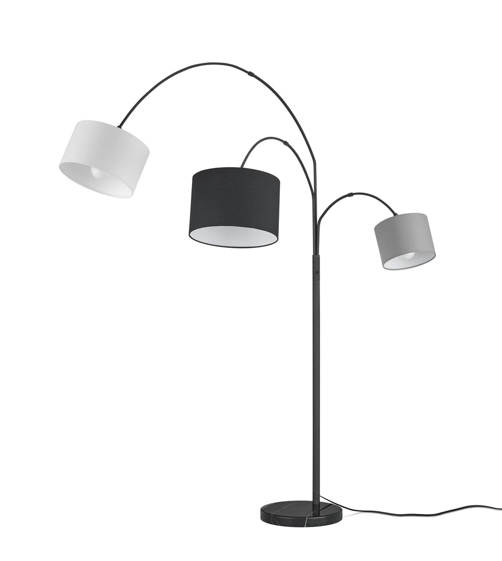 Clark Piantana Nero Opaco Ad Arco Con 3 Paralumi Diversi Diametri E Colori H. 194Cm