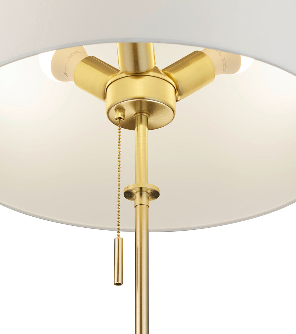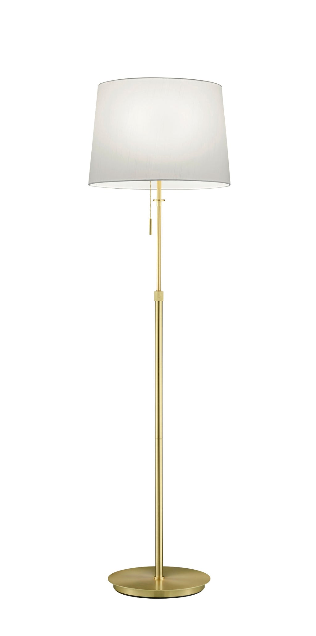Lyon Piantana Ottone Satinato Con Paralume Bianco Regolabile In Altezza E Con 3 Lampadine Ad Accensione Separata H. 140-180Cm, D.46,5Cm