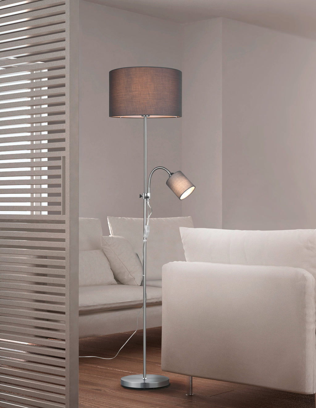 Owen Piantana Metallo Acciaio Satinato Con Lampada Lettura E 2 Paralumi Con Accensioni Separate D. 36Cm Altezza 160Cm