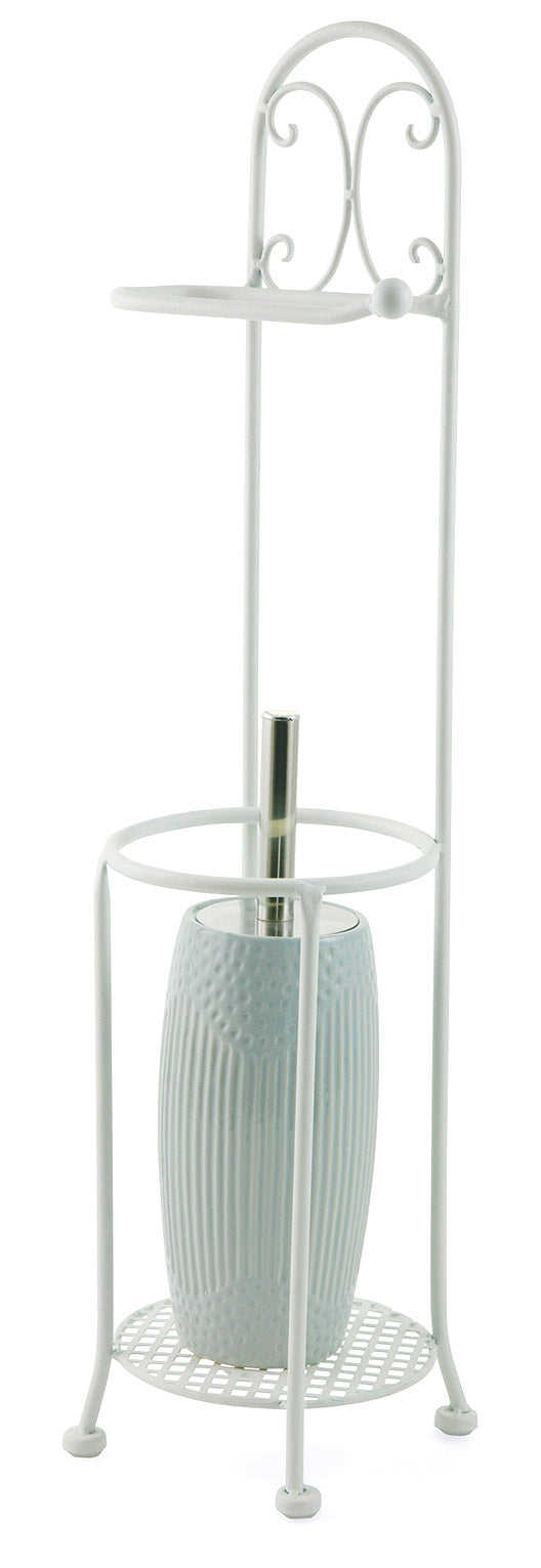 Piantana Porta Rotolo e Porta Scopino in Ferro Battuto Soriani Bianco