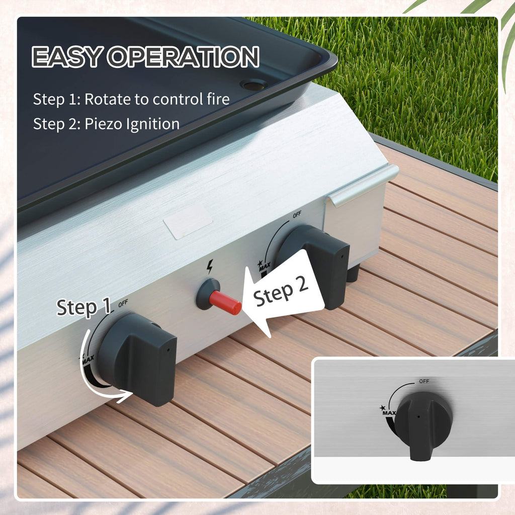 - BRUCIATORI POTENTI: Facile da accendere con il sistema piezoelettrico, il barbecue a gas è dotato di 2 bruciatori con una potenza di 2.4kW, che assicurano un riscaldamento uniforme della piastra. Puoi anche creare aree di cottura con differenti temperature per preparare vari cibi nello stesso momento