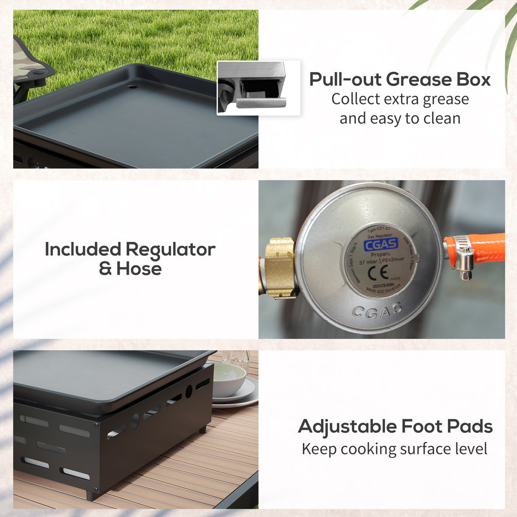 - DIMENSIONI COMPATTE: Con la nostra piastra a gas puoi preparare tanti piatti in ogni posto. È ideale da portare ai picnic con gli amici o da usare semplicemente nei tuoi spazi all'aperto. I piedini regolabili ti consentono di impostare l'altezza del barbecue da tavolo e mantenerlo stabile