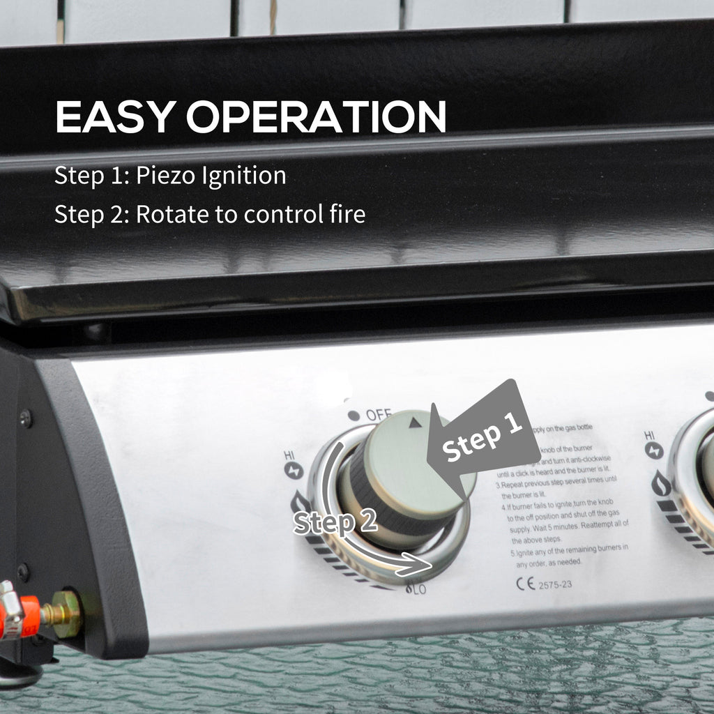 - 3 BRUCIATORI A GAS: Il barbecue a gas è dotato di accensione piezoelettrica e 3 bruciatori con una potenza di 3kW, che assicurano un riscaldamento uniforme della piastra. Puoi anche creare 3 aree di cottura con temperature diverse per preparare vari cibi nello stesso tempo