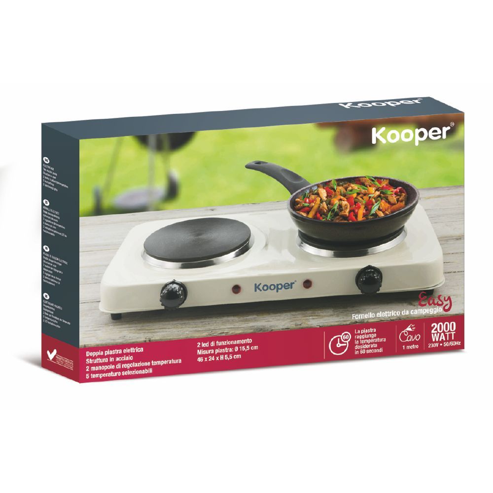Piastra Fornello Elettrico Da Campeggio Doppia Piastra 2000W Kooper Easy