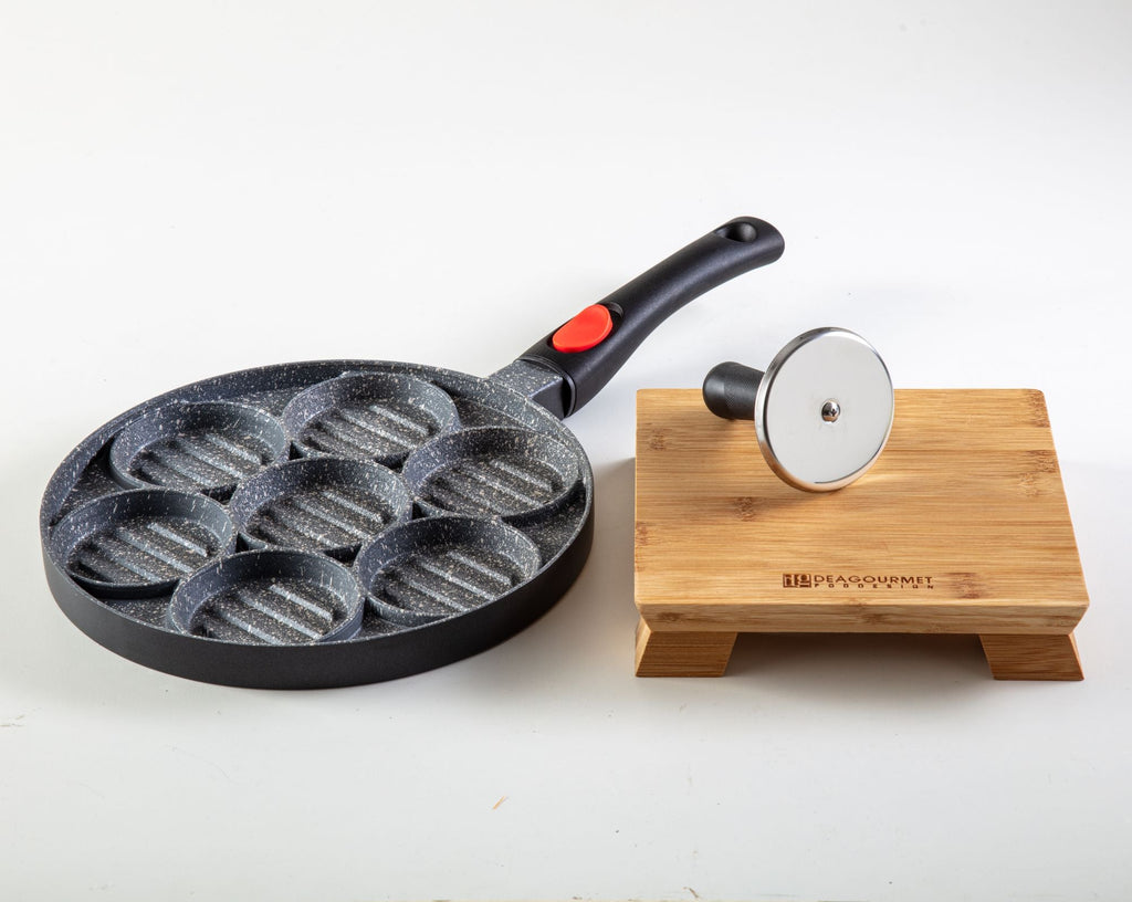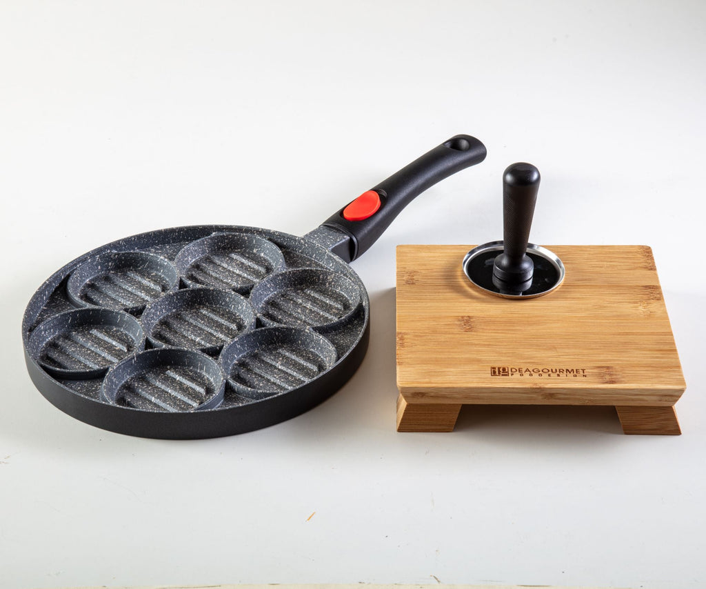 Piastra per 7 Hamburger con Tagliere in Legno 20x20x4 cm