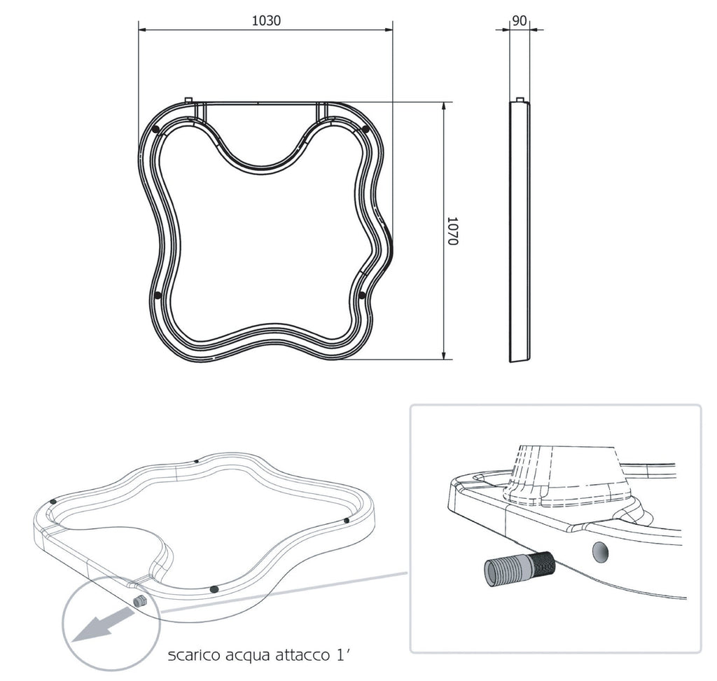 - Dimensioni Piatto (HxPxL): 9x107x103 cm