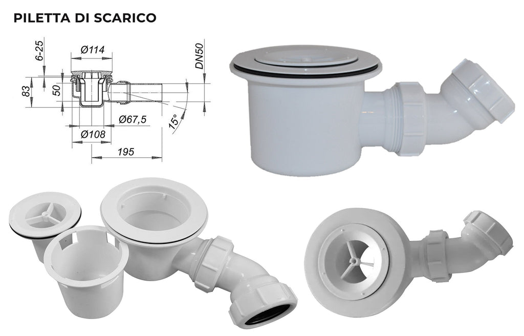 - Piletta di scarico inclusa nel prezzo e fornita assieme al piatto doccia