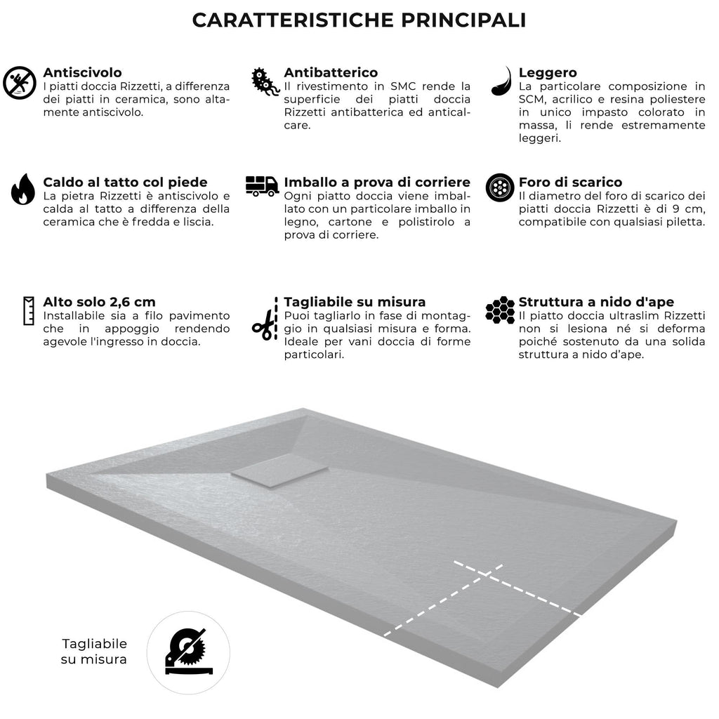 Piatto Doccia 80x140 cm Effetto Pietra Rizzetti Ardesia Grigio