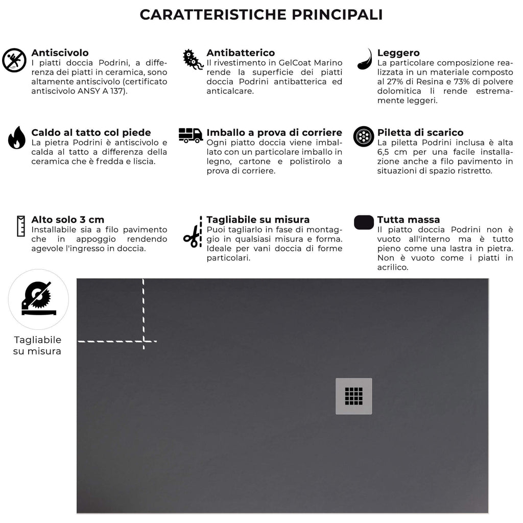 Piatto Doccia in Pietra Bonussi Everest Antracite Varie Misure