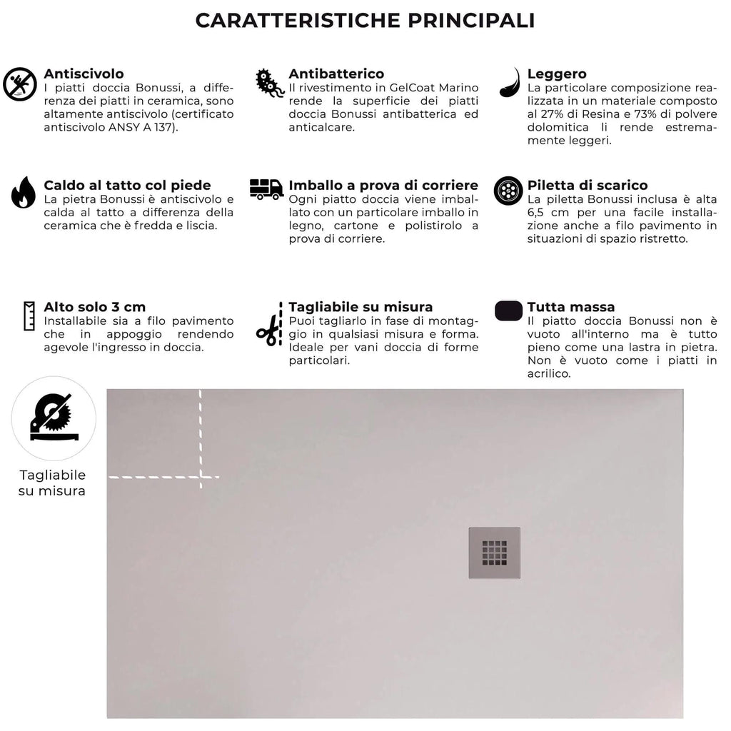 Piatto Doccia in Pietra Bonussi Everest Bianco Varie Misure