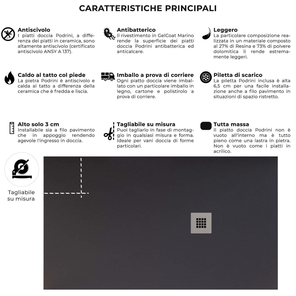 Piatto Doccia Rettangolare 90x170 cm in Marmoresina Bonussi Ardesia Everest Nero RAL 9005