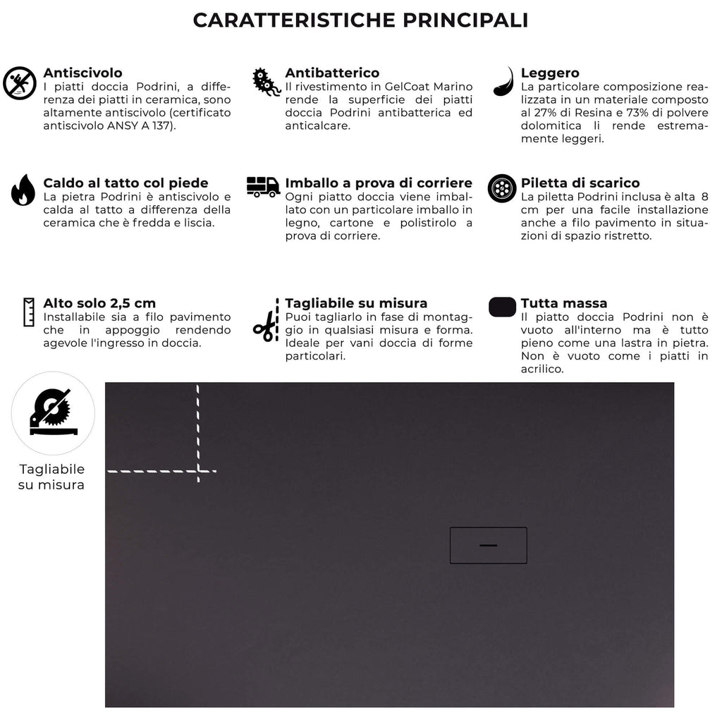 Piatto Doccia in Pietra Bonussi Manila Nero Varie Misure