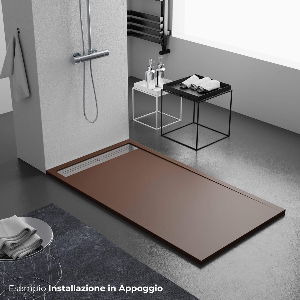 Piatto Doccia Rettangolare 70x110 cm in Resina Top Bonussi Ardesia Trivor Marrone RAL 8017
