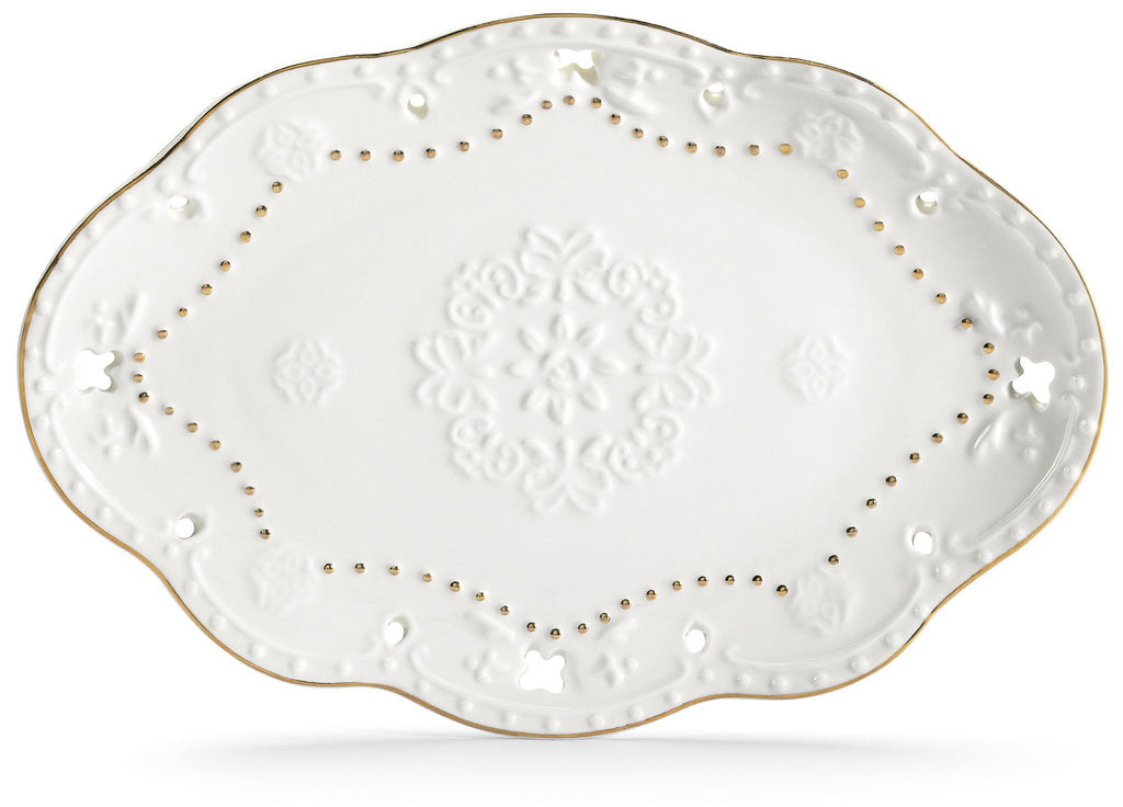 Piatto Ovale 24x17 cm Traforato in Porcellana Kaleidos Charme Filo Oro