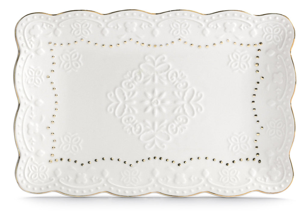 Piatto Rettangolare 30,5x20,5 cm Traforato in Porcellana Kaleidos Charme Filo Oro