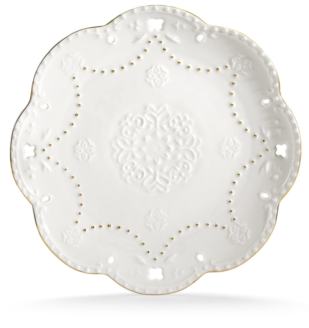 Piatto Tondo Ø25,5 cm Traforato in Porcellana Kaleidos Charme Filo Oro