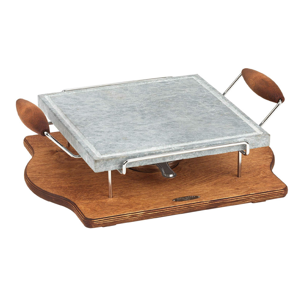 Cucinare in modo sano, sulla pietra. Servire elegantemente, su legno. Mantenere le pietanze alla temperatura ideale. Tutto questo è possibile, grazie alle piastre in pietra ollare dotate di vassoio in legno e fornelletto. Protagoniste della tavola, con il loro gusto genuino e piacevolmente rustico.